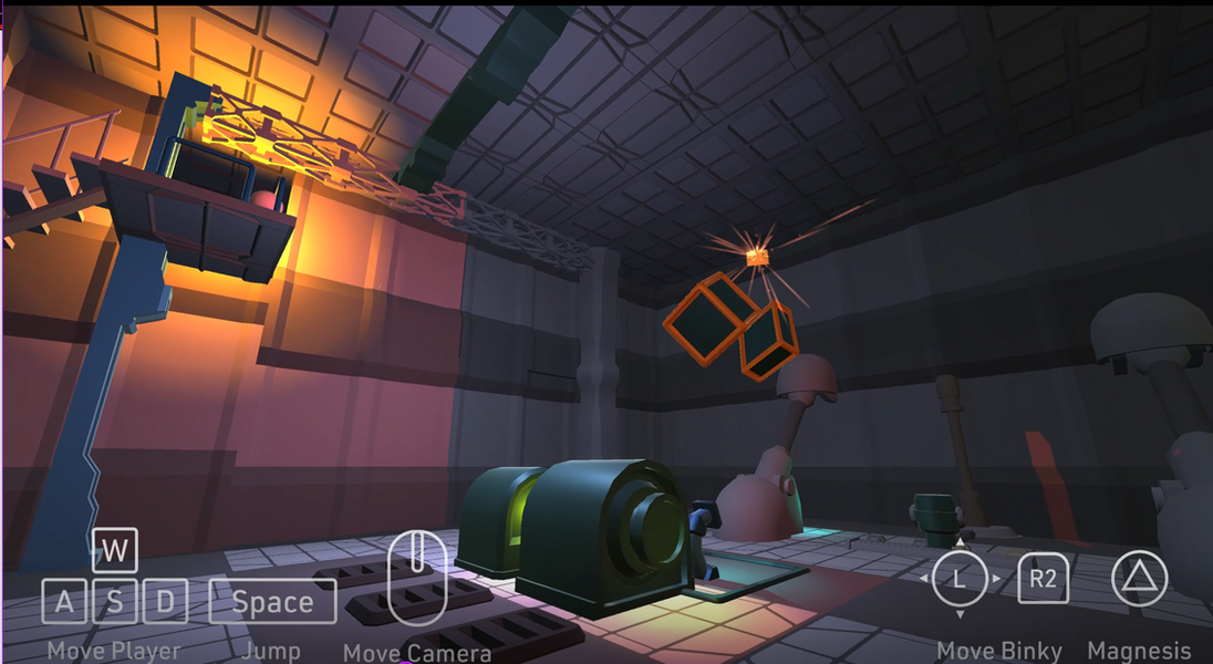The game was originally made for the 2020 Global Game Jam, with the theme of repair. One player controls the camera and does all the platforming, while the other controls Binky, a little pyramid that can attract objects towards himself. Together, the duo must save the world from the explosion of the Nuclear Reactor Core.